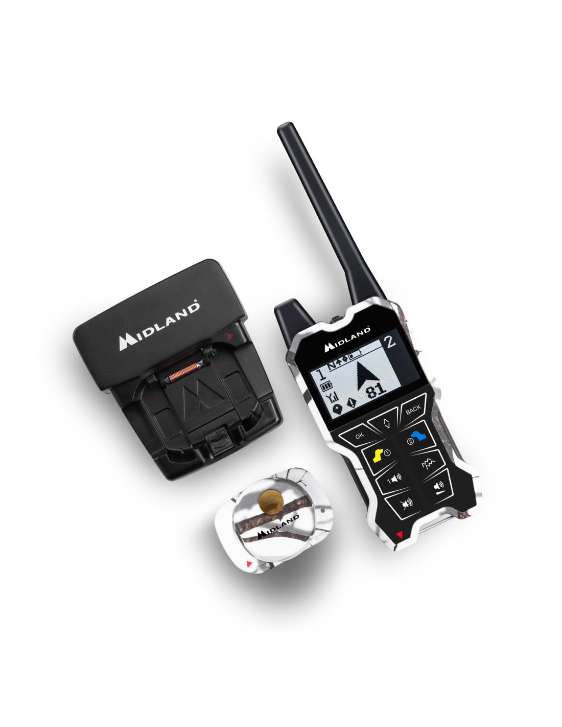 Monitoreo y gestión de 2 auxiliares - Cobertura hasta 2,5km - Visualización de distancia y posición de tus auxiliares - Aviso de perro parado en el mando - " Función "Vibración" en el collar y control remoto - Control remoto con pantalla grande para la localización inmediata de tus perros - Modo de funcionamiento del collar ajustable a distancia - Pilas recargables - Collar impermeable IPX7