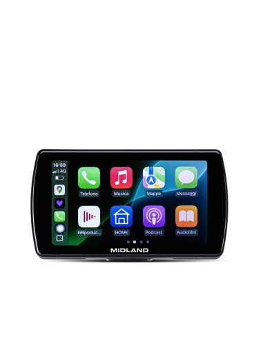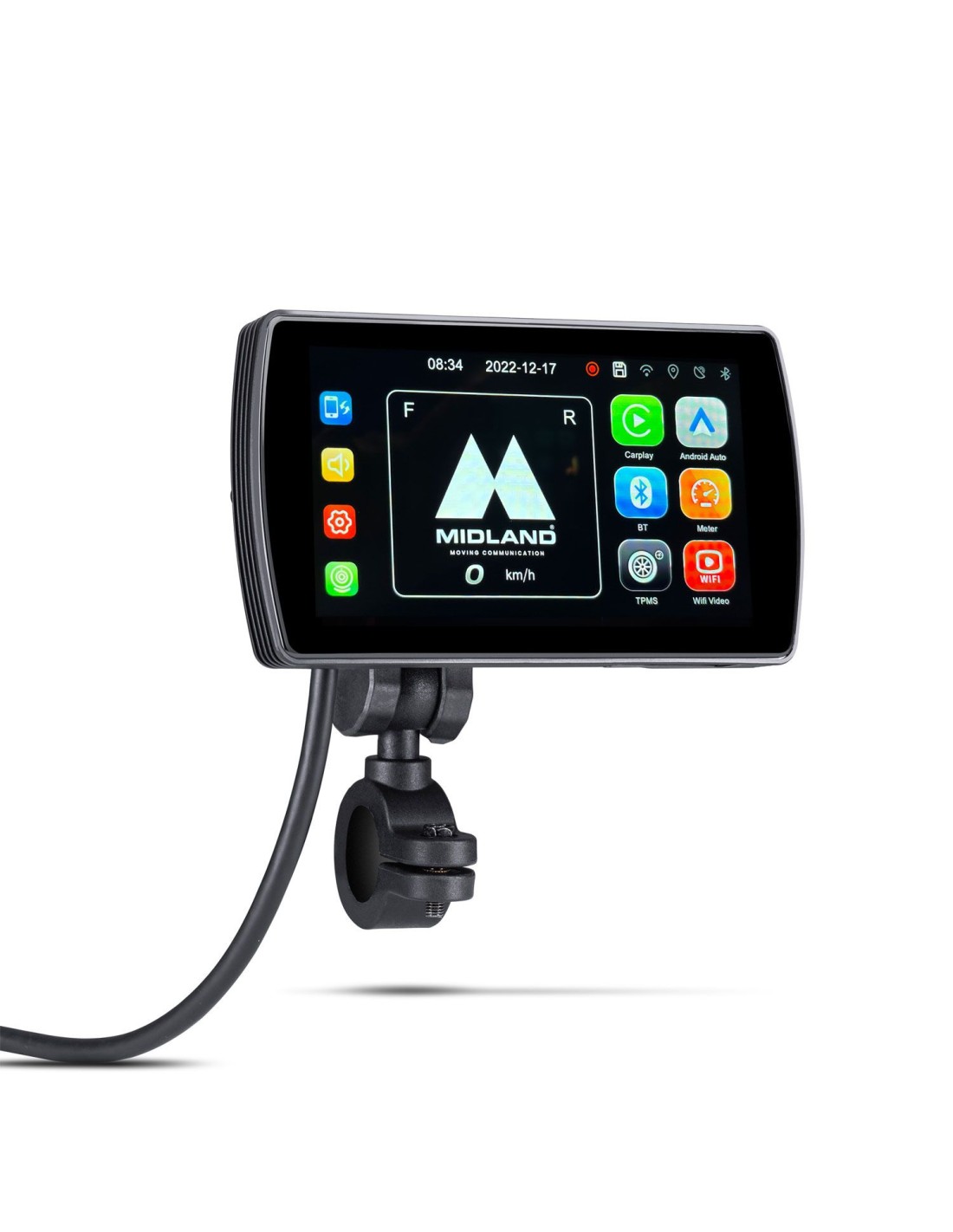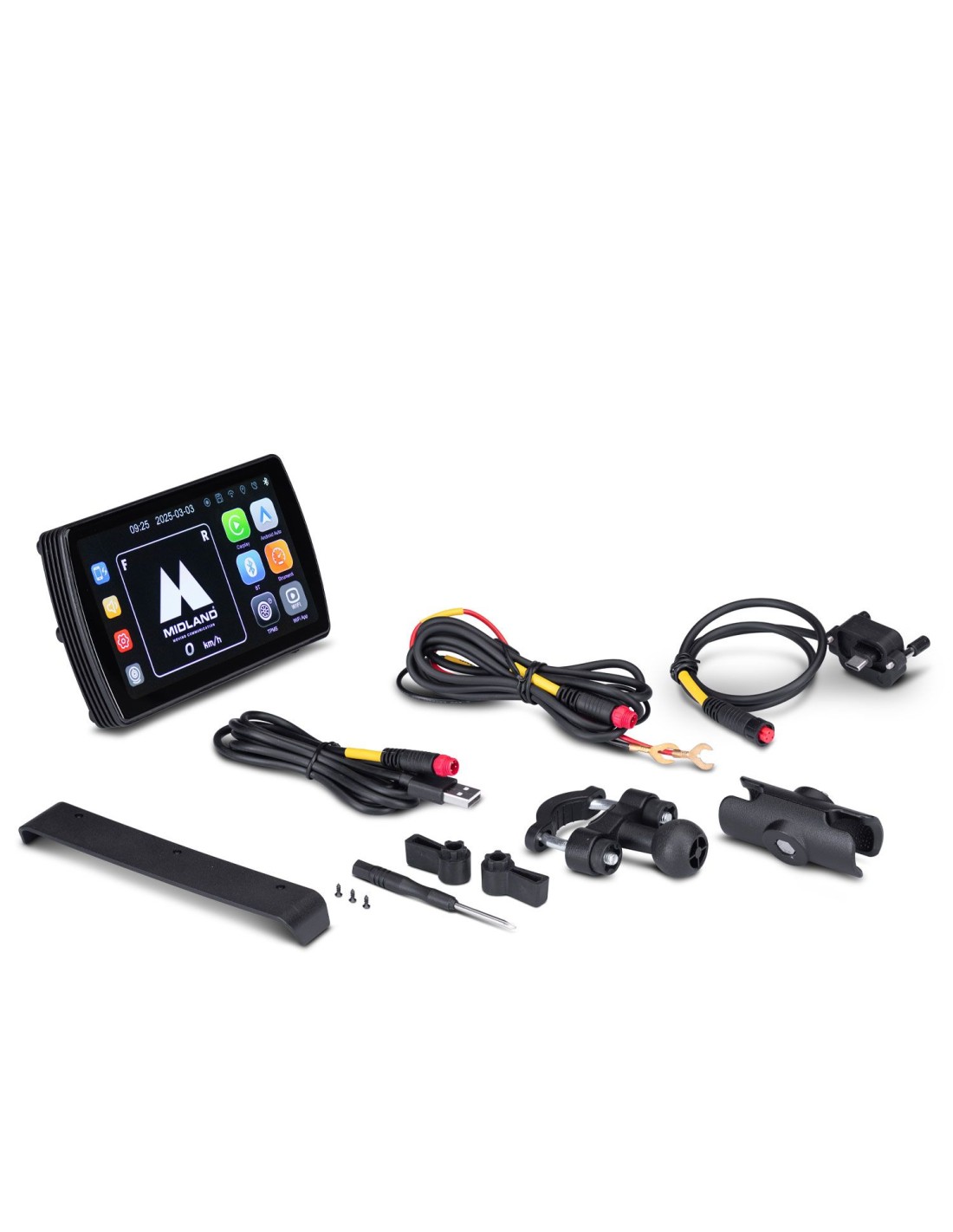 CarPlay para motos con duplicación de pantalla, pantalla táctil de 5,5", comandos de voz y fijación de liberación rápida.